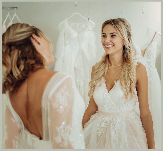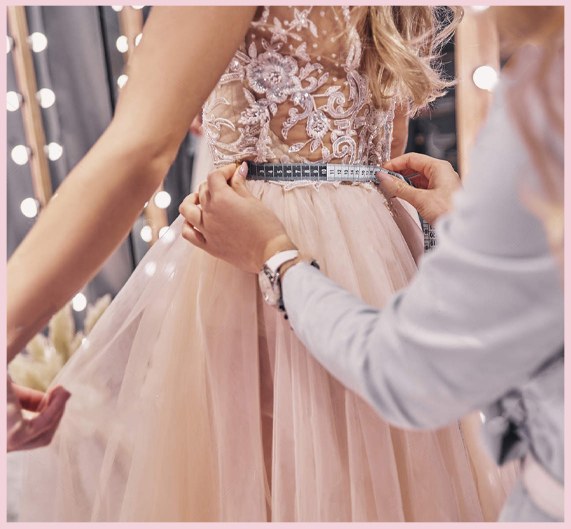 После того, как вы выбрали понравившееся платье, в его стоимость как правило входит подгонка платья под ваш рост, размер и индивидуальные особенности фигуры. Очень важно, чтобы платье сидело идеально и невесте было в нем комфортно.